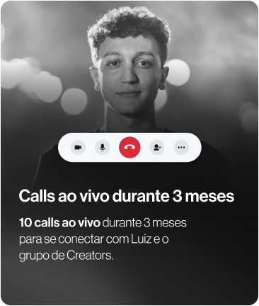 O Creator Club é a primeira (e oficial) comunidade já lançada pelo Luiz com acesso Exclusivo ao seu grupo seleto. Ao invés de ser um curso, a dinâmica do Creator Club é sobre promover um hub de crescimento pessoal e profissional, com aulas ao vivo semanais semanais sobre temas relevantes e treinamentos exclusivos complementares à comunidade.